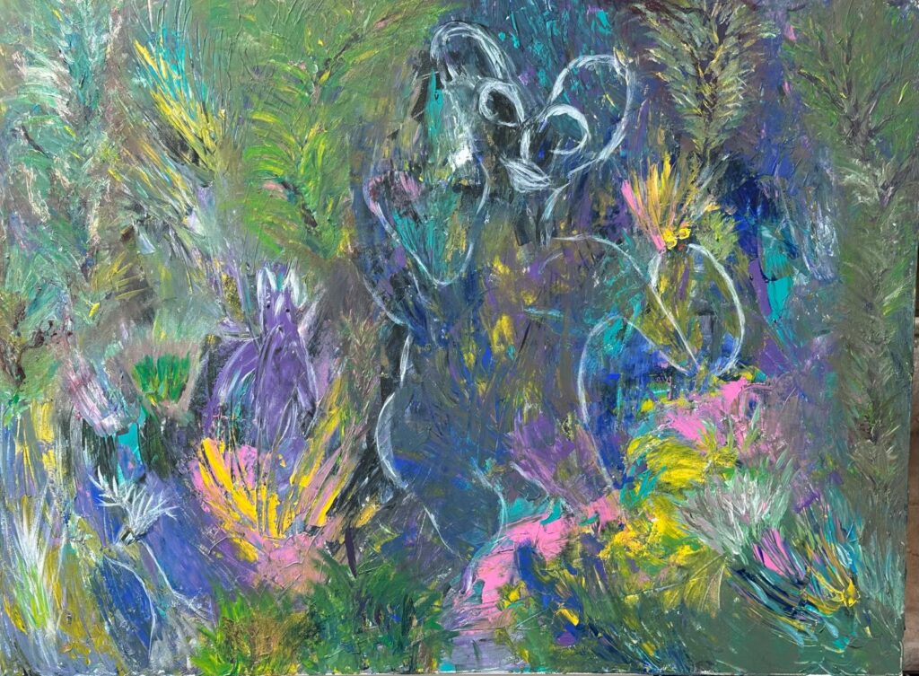 Magda and Francois found Rassouli from seeing one of his decks of Oracle cards and followed their hearts joining Rassouli’s art retreat in 2024. They continued the joy of painting Playshops and a Retreat in 2025. Enjoy the gallery below to savor their playful art. They bring their love of dance and color to their art and joy to everyone they meet.
