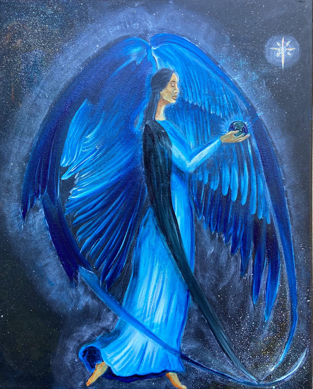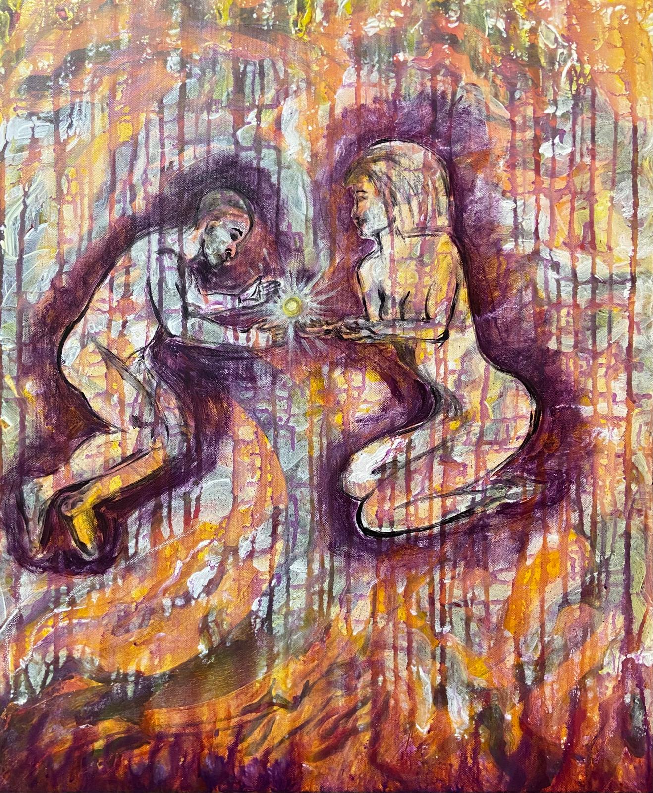 I create as a vehicle to express my body of work I carry within. Through the practice of Creating I access FLOW where I experience a sense of timeless ecstatic embodiment. Painting creates a sensation of relaxed mind/body/spirit balance, presence and even breath. I create to access the voice of my Muse: my Soul Voice. My Soul Voice guides my brushstroke, choice of color, included symbols, and the essence and expression of the being.